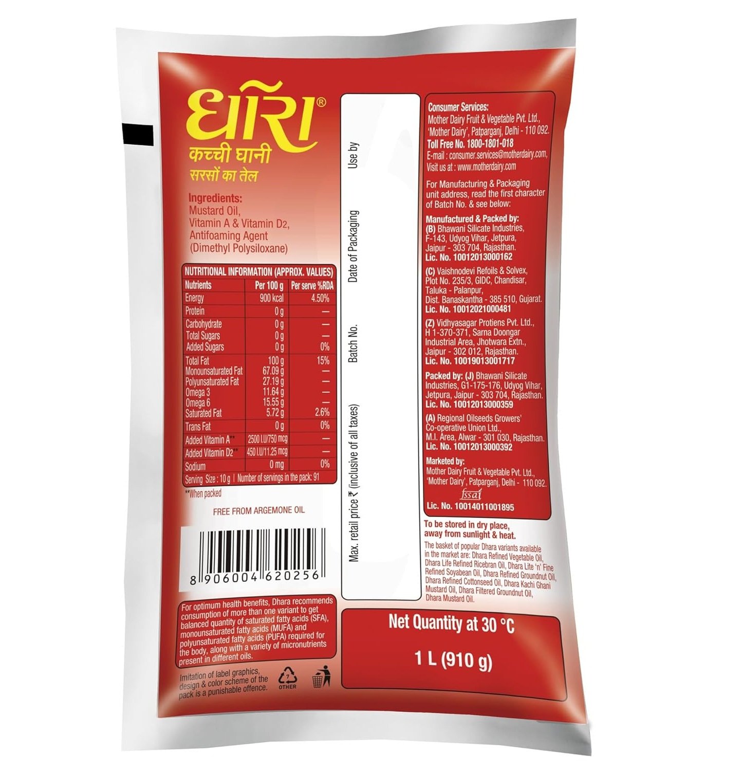 Be the first to review “Dhara Kachi Ghani Mustard Oil (0% Trans Fat), 1 L Pouch”