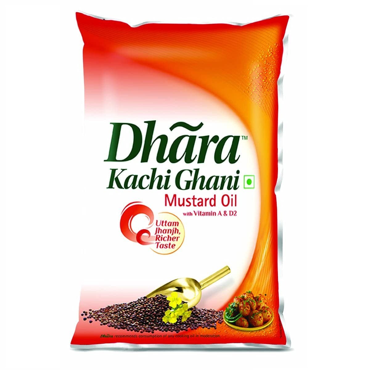 Dhara Kachi Ghani Mustard Oil (0% Trans Fat), 1 L Pouch