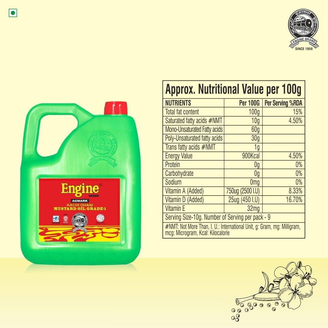 Engine Brand Kachi Ghani Agmark Grade – 1 Mustard Oil – 5 Liter Jar